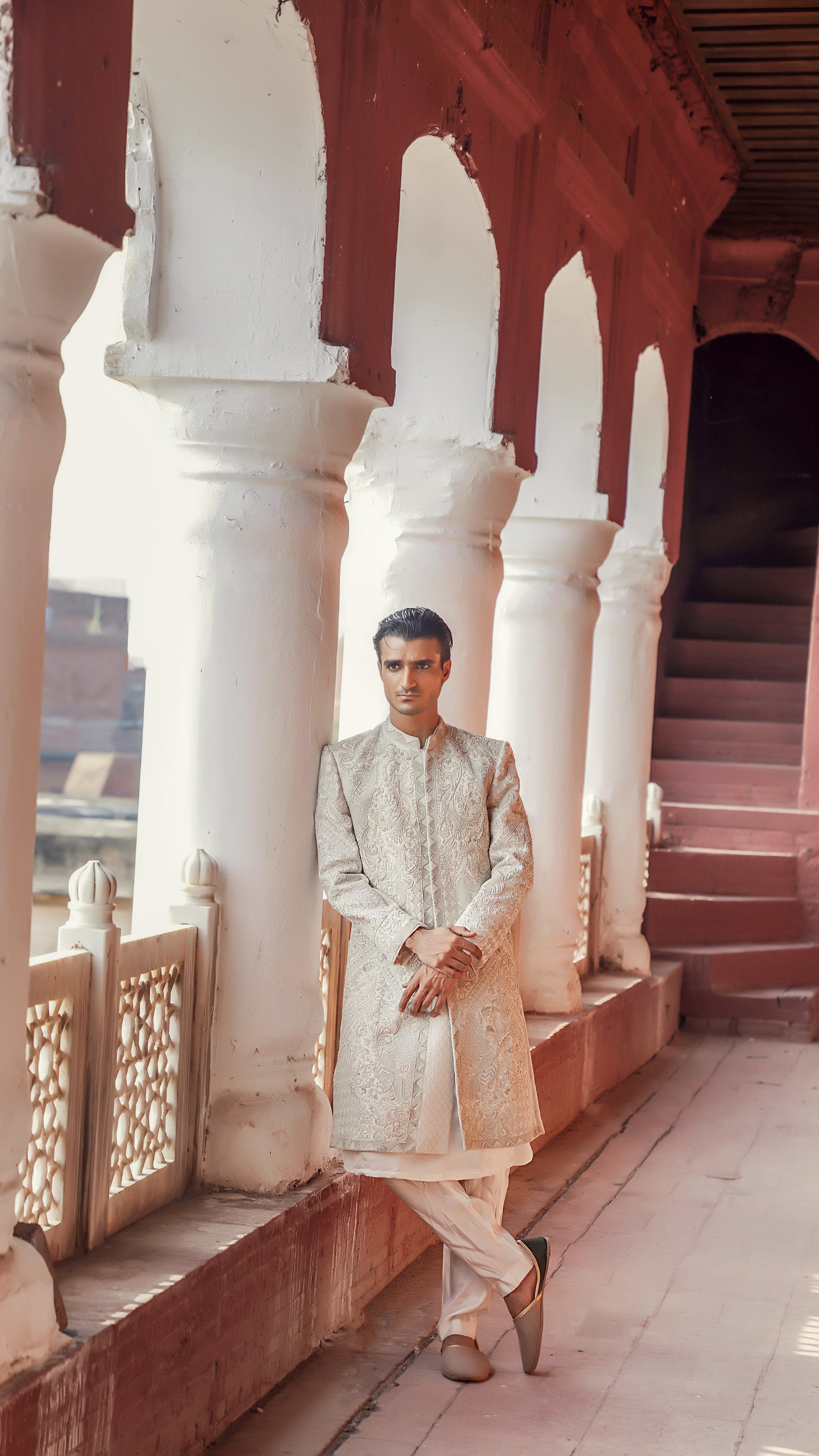 Begin your Safar – a journey of the soul – with this exquisite pearl white kurta, a garment that embodies the grace and spiritual depth of Sufism. Meticulously crafted from textured silk, this piece is more than just clothing; it is a wearable reflection of an inner pilgrimage.